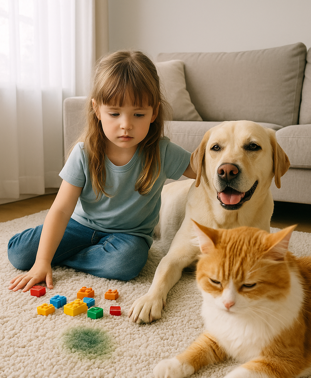 В семьях с детьми и животными ковер испытывает повышенную нагрузку, но при правильном уходе он может оставаться свежим и чистым. Регулярная уборка, быстрая реакция на пятна и использование простых лайфхаков помогут продлить срок службы ковра.